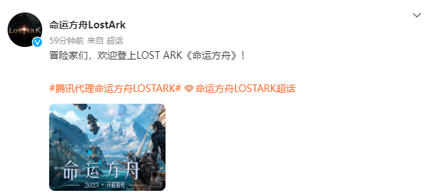 《失落的方舟》国服《命运方舟》开通官方微博,国服将由腾讯代理,游戏预计于2023年开服。![]()