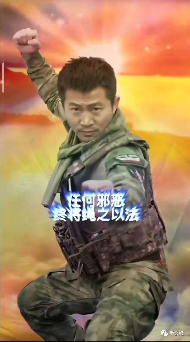 严格来说这是个有点语病的话呀,最后应该是个被字句。这是替身演员孙国帅的短视频最后的标准结尾。就像美少女战士变身的兼用卡一样,在做出了正道的光的行为后,孙国帅在特效中换上了特种兵衣服,在《惊涛落日》唢呐声的bgm下,一种廉价的自豪感油然而生。