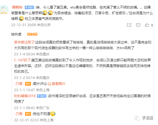 那么就说到《三体》了,老实说播到第五话还追着骂的行为,还是会让人感觉别有所图的,要是真不喜欢那就别看了呗。姬把第五话看了主要是因为这周歪果仁们都放假了,就硬着头皮看下来了。