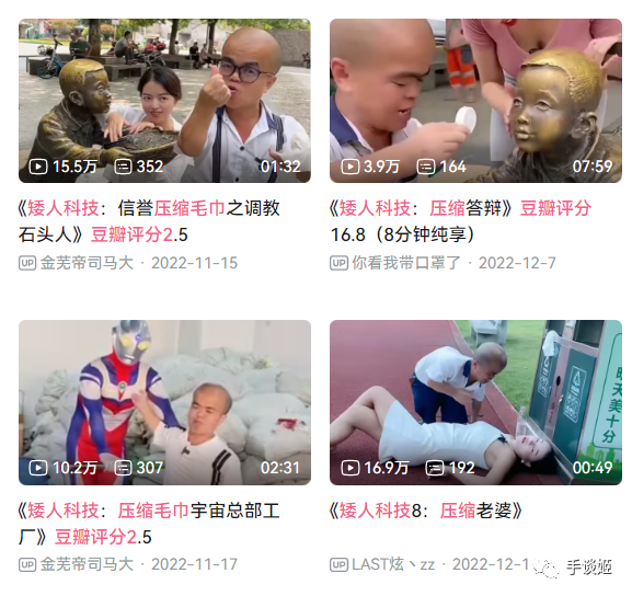 咱没有歧视别人长相的意思,但这个短视频系列多少沾点拿小个子博眼球的意图,还配上一些身材姣好的女性助演,这套打法还蛮经典的,可惜欧美那边已经不流行这个了。