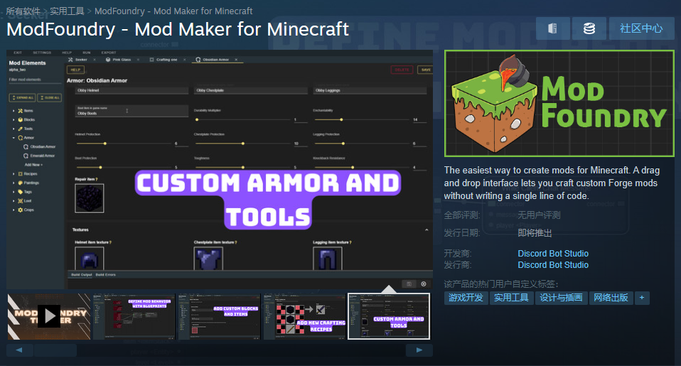 拥有6.5w+愿望单的第三方我的世界Mod工具《ModFoundry》已被Steam下架。