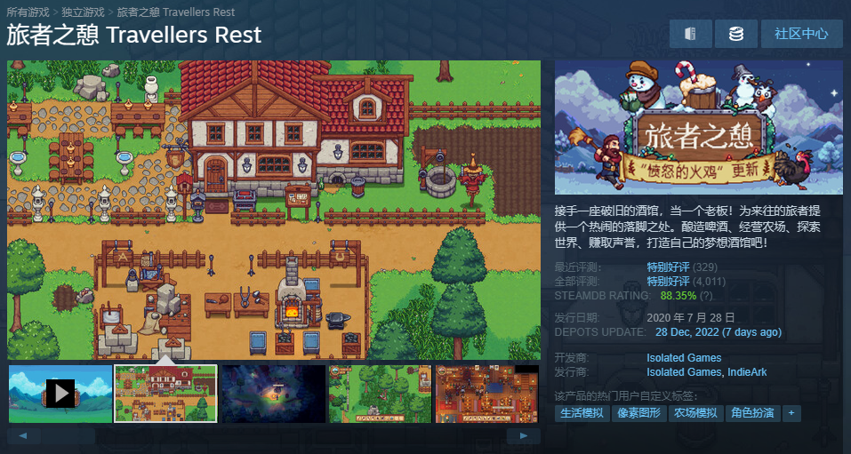 《旅者之憩》开发商发布公告,宣布在Steam冬季特卖结束后,游戏在某些国家/地区的定价将被上调。