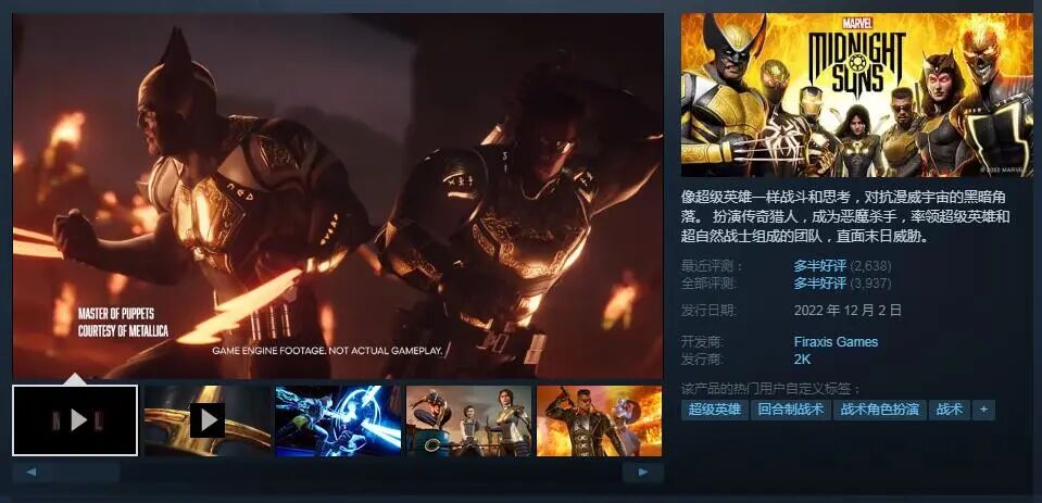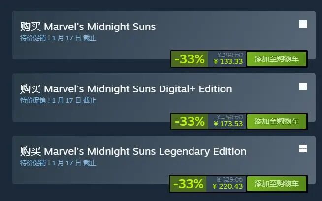 《漫威暗夜之子》于2022年12月2日登陆Steam,时隔一个月这款游戏便迎来了打折。目前降价33%促销中,国区优惠价133.33元。本次促销截止至1月17日。