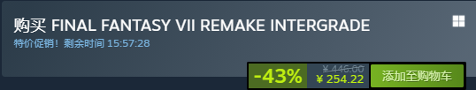 FINAL FANTASY VII REMAKE INTERGRADE-43% Steam售价:446 折后:254.22(新史低)