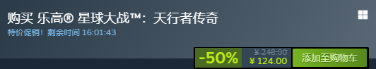 乐高星战: 天行者传奇-50% Steam售价:248 折后:124(新史低)