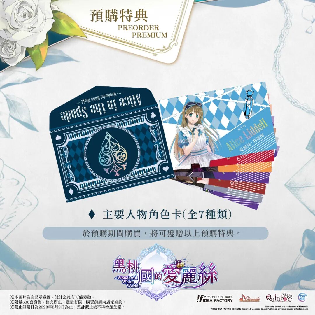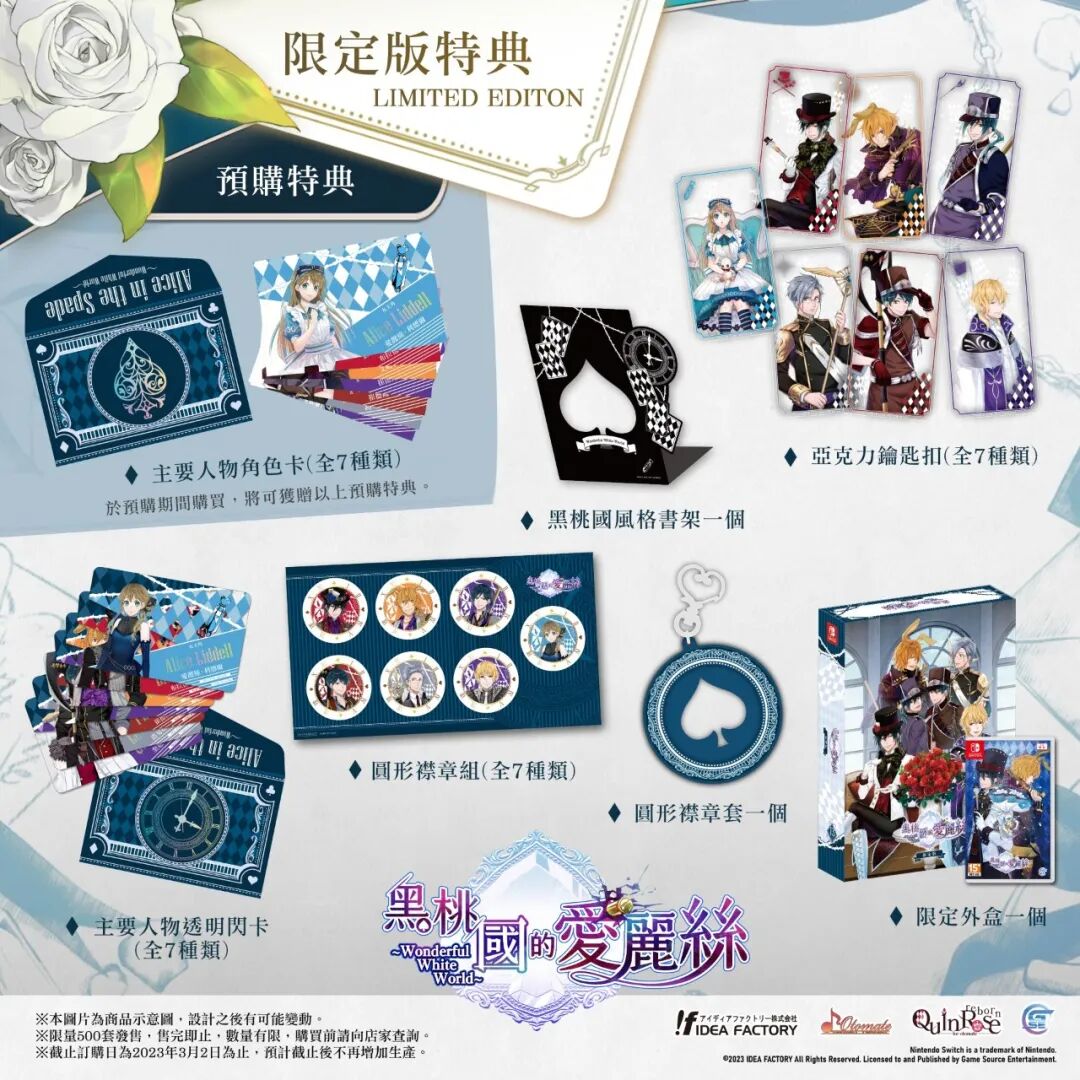 香港GSE公布Otomate乙女游戏《黑桃国的爱丽丝 ~Wonderful White World~》特典情报,本作繁体中文版将于2023年内登陆Switch,售价未定。