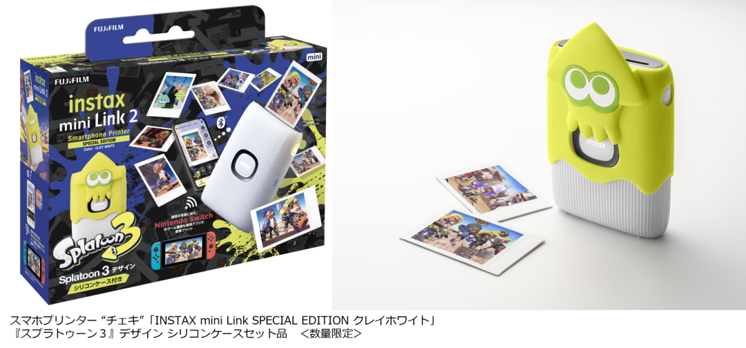任天堂与富士合作,将于1月19日推出《斯普拉遁3》限定版INSTAX mini Link 2,可以方便用户将游戏截图打印出来,也可以在app中为拍到的照片添加《斯普拉遁3》的装饰元素。