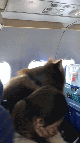 拍摄者自然也是对狗狗特别感兴趣的一员,他把自己的影片分享在了社群中,成为了热门话题!我们看到:从机舱后方渐渐向前靠近的镜头中,有着一身蓬松棕毛的阿拉斯加雪橇犬在机舱不大的座位上带着笑意、一脸友善地向朝着它看的旅客投以温暖的笑容!整个机舱里的乘客都不禁好奇地探头看着狗狗庞大又可爱的身影。