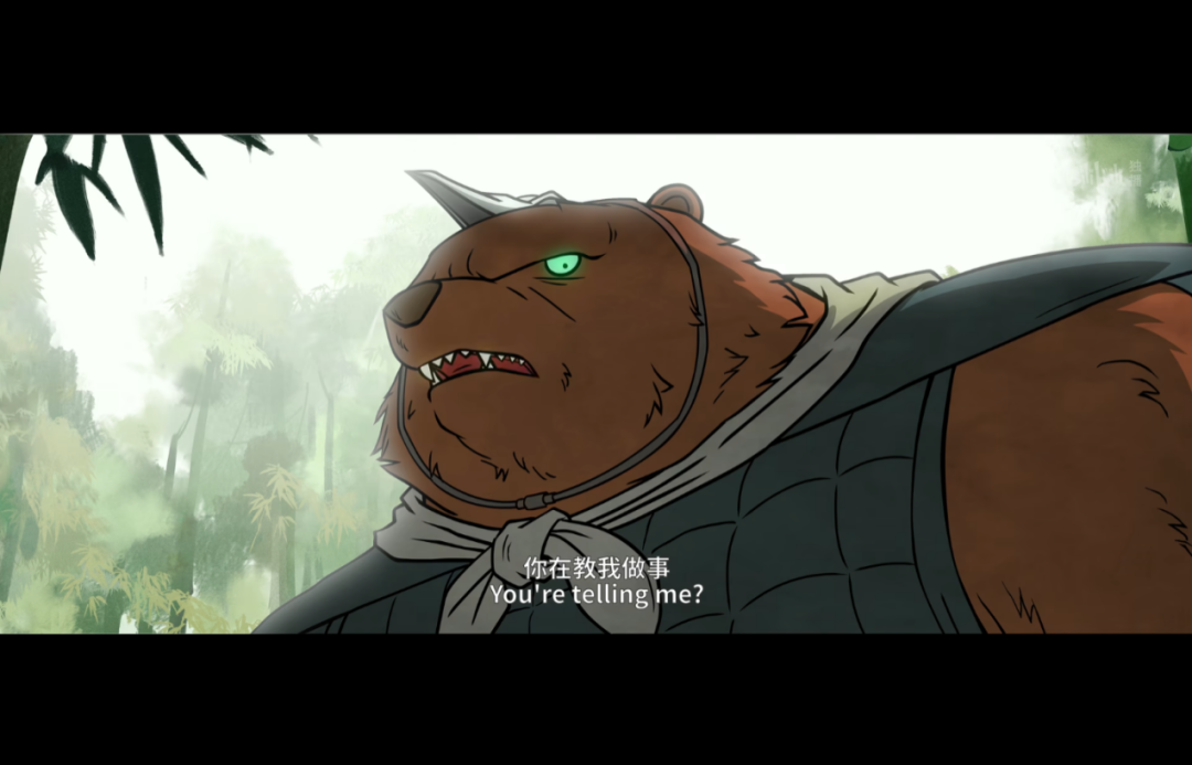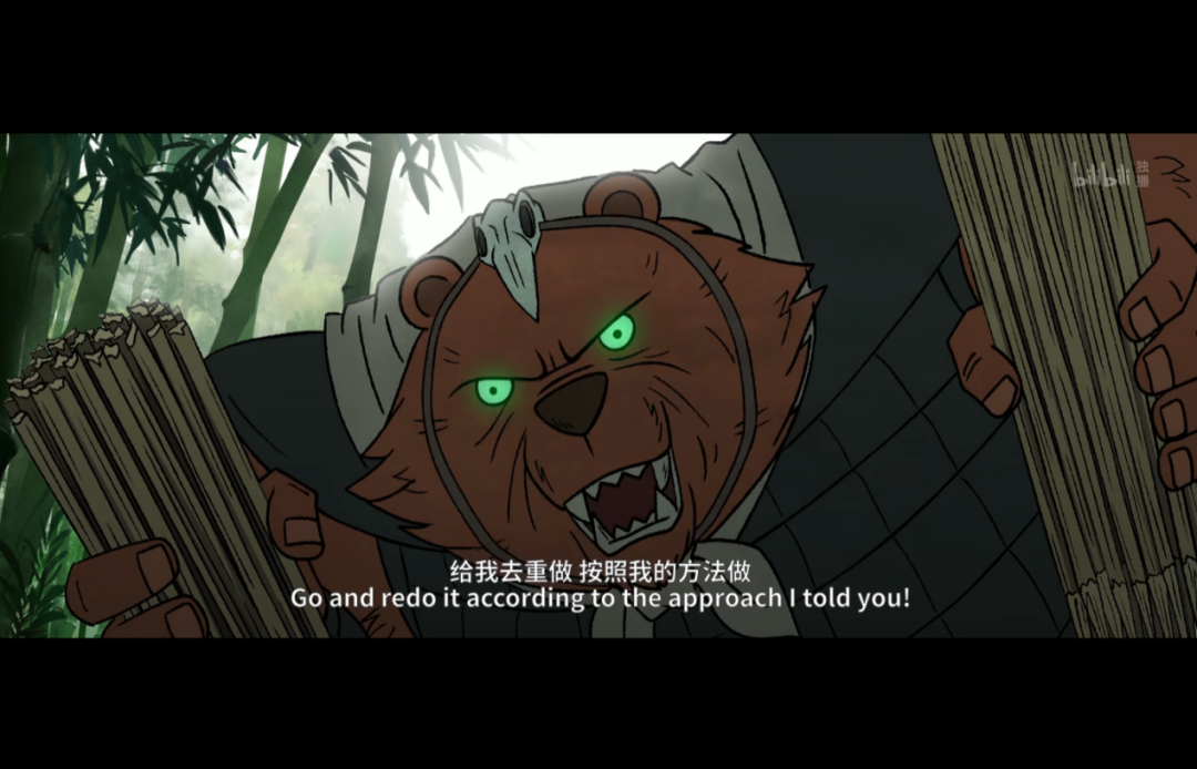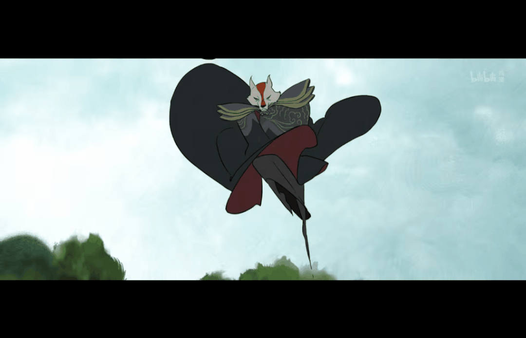 狼大人追逐小猪妖时,飞身跃起,化为数只狼影,整段镜头用笔飘逸、变化流畅,行云流水仿佛泼墨舞动。