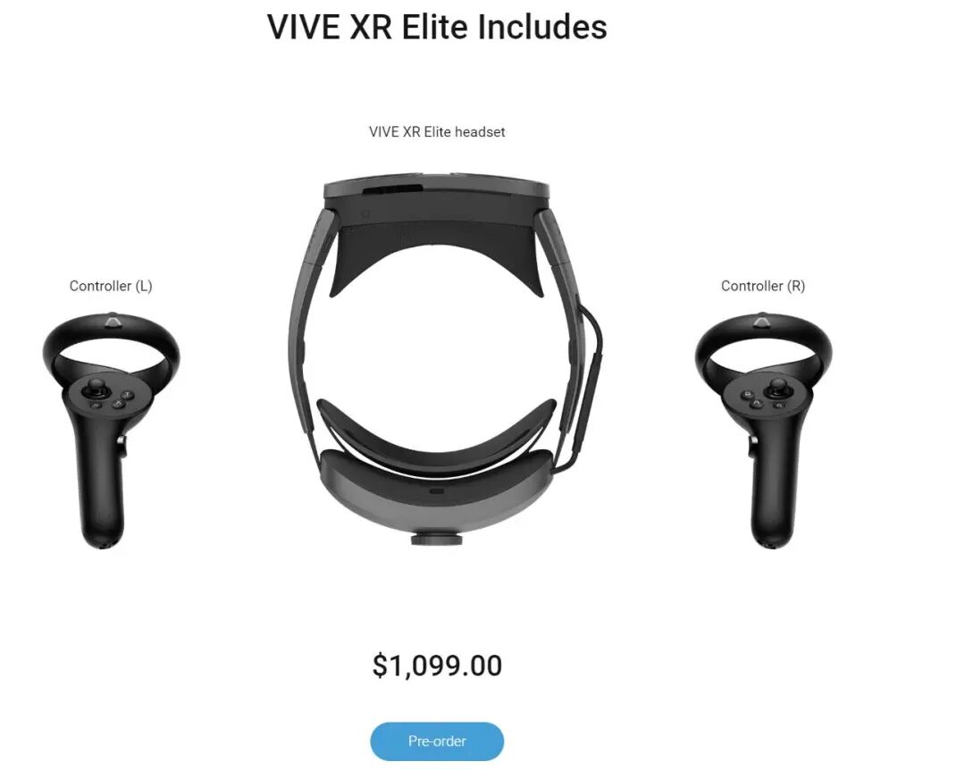 Vive XR Elite的订单预计从2月底开始陆续发货,硬件本身带有头盔、2个手柄和头盔电池支架,定价为1100美元。