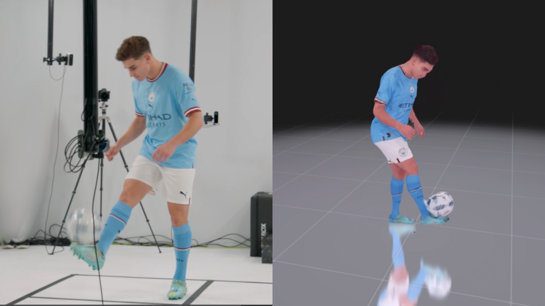 该展区展示了一个新系统的原型,可以在任意地点以低延迟捕捉和分发人、物和空间的动画3D重建。该系统只需要7个传感器,可在任意地点快速部署,满足现场发布3D视频的需求。参观者可以通过平板电脑和索尼空间现实显示屏,体验曼城球员和观众在3D元宇宙空间中的360度视角画面。