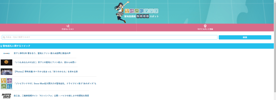 再后来,随着日本动画的发展以及巡礼行为的普及,去往作品中某一个地方旅游打卡成为了一项热门的活动,为的就是亲身体验身在作品之中的感觉。为了让大家更方便的寻找“圣地”,日本还有人专门制作了一个包含5000个圣地的巡游检索器——聖地巡礼マップ。
