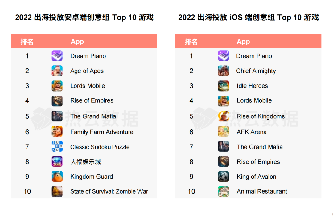 与此同时,全球移动游戏市场受全球宏观环境、疫情红利消退等因素影响,手游下载量、收入首次出现同比下滑,但纵观全年手游增量数据,全球手游买量市场表现仍处高位,且中国出海厂商表现稳步提升,出海产品趋于全面化、精品化,进一步抬高入局门槛,同时买量创意和运营策略都卷出了新高度。