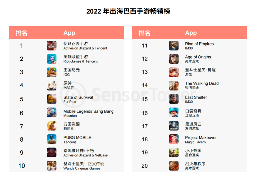 以巴西出海手游市场为例,巴西市场作为近年来热度逐渐攀升的游戏出海市场,目前与全球重点市场之间差异,正在急剧缩减。具体而言,一方面休闲类游戏在巴西出海市场的下载量急剧攀升;另一方面,恰逢“世界杯年”, 足球游戏在巴西受众广泛,加之世界杯的热度,使得出海手游《Soccer Super Star》成功拿下 2022 年下载榜首位。