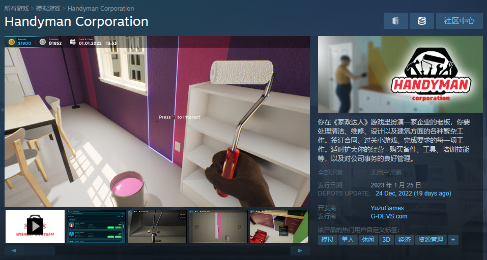 模拟新作《家政达人》现上架Steam。