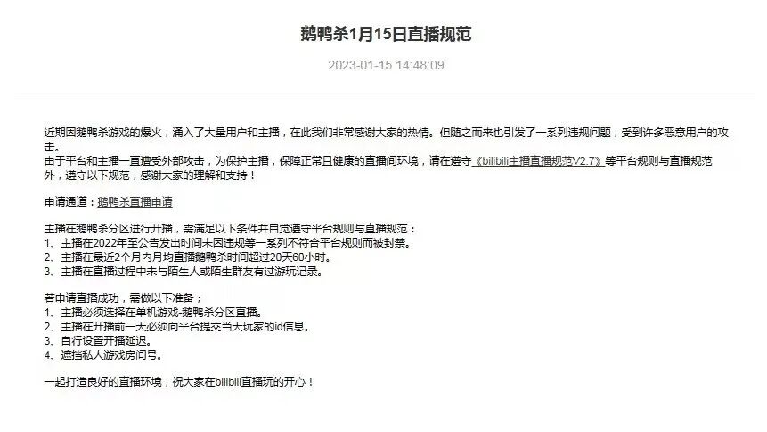 1、《黑神话:悟空》今日发布兔年贺岁视频,据视频内容显示,游戏预计于2024年夏季发售。2、近日,由于《鹅鸭杀》受到恶意攻击,造成主播在直播时遇到了一系列问题。对此,B站出台了相关新规,其中包括提前一天提交玩家ID信息,遮挡私人游戏房间号等。![]()
