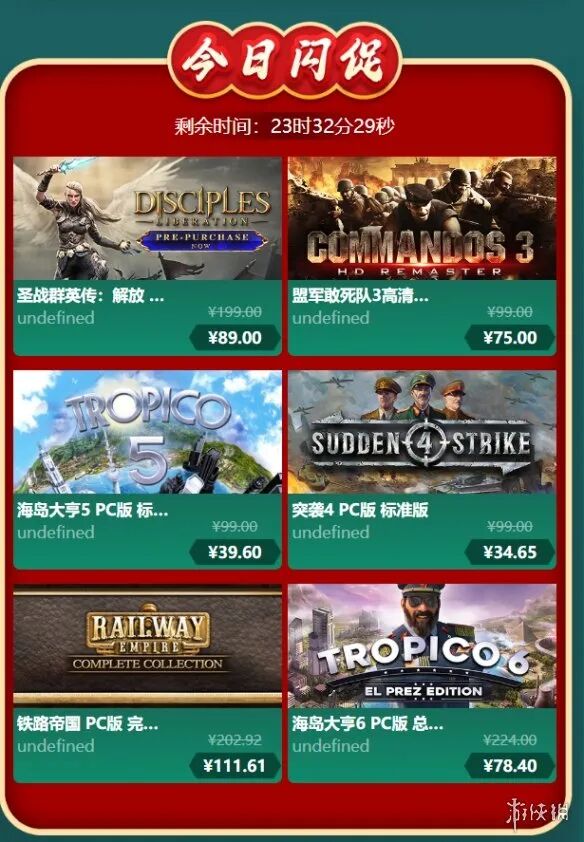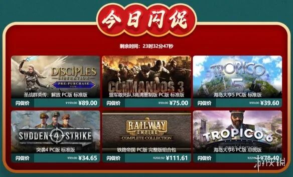 凤凰游戏商城新年限时闪促游戏推荐,6款游戏迎来新史低价!遇到感兴趣的游戏,大家千万不要错过哦~https://www.fhyx.com/zt/2023newyear/?uf=dlsybanner#sanchu 《圣战群英传:解放》Steam史低价¥99.50,凤凰秒杀价:¥89.00 《盟军敢死队3高清重置版》Steam史低价¥89.10,凤凰秒杀价:¥75.00 《海岛大亨5》Steam史低价¥14.00,凤凰秒杀价:¥39.60 《突袭4》Steam史低价¥17.00,凤凰秒杀价:¥34.65 《铁路帝国》完整版组合包Steam史低价¥251.16,凤凰秒杀价:¥111.61 《海岛大亨6》Steam史低价¥79.60,凤凰秒杀价:¥78.40-END-