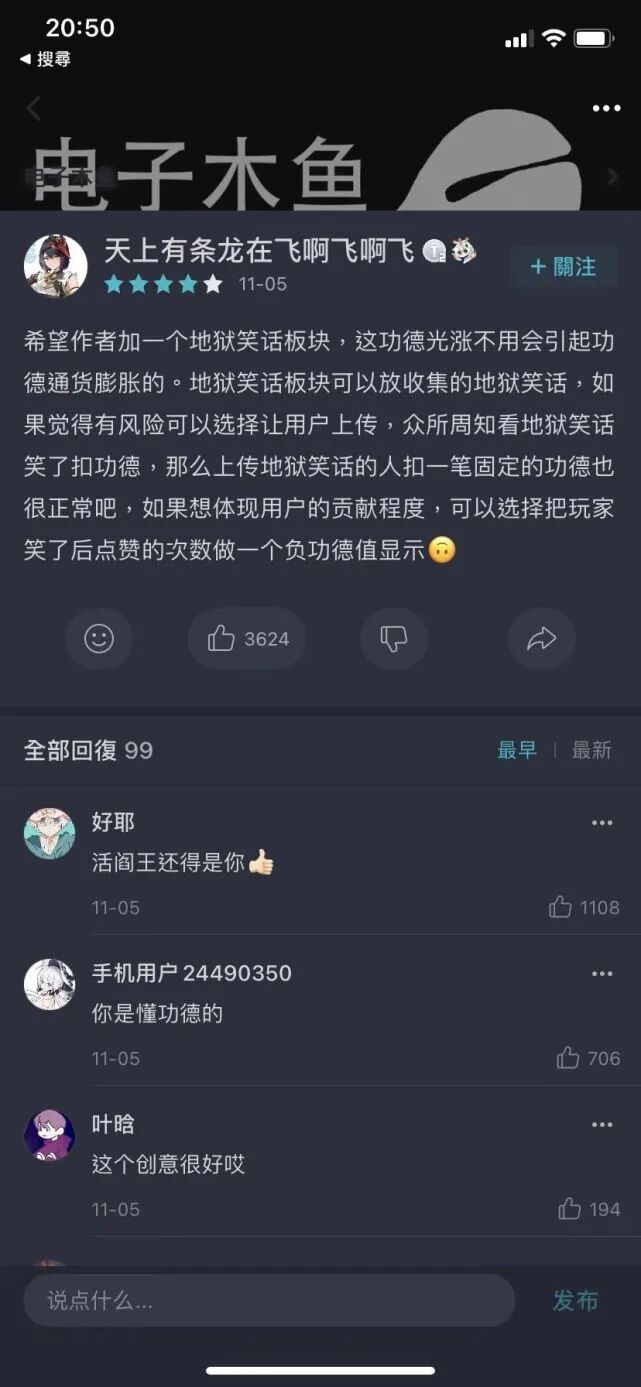 “敲电子木鱼,见机甲佛祖,取赛博真经,见初音未来。”你有敲过时下流行的电子木鱼吗?电子木鱼是苹果应用商店APP Store免费榜上排名第二的软件,敲击屏幕就等于在敲木鱼,也可以设置自动敲击。它发出白噪音,拥有使心灵放空、增加电子功德、超度老板等功效,满足玩家的解压要求。电子木鱼的一大主要功能是与看地狱笑话的缺德快乐进行功过相抵。除此之外,使用电子木鱼的人也认为,敲击电子木鱼可以积攒功德,或者是实现“烦恼-1”。这些概念原本源于佛教,追根溯源就可以发现,过去的人们和今天的我们在追求上有相似之处,当然做法上的偏差极大。或许通过对照古人消除烦恼和积攒功德的做法,我们能更好地意识到今天自身的处境。也许有人会说,电子木鱼又不是真木鱼,赛博佛祖也非真如来,敲电子木鱼的人不是信徒,只是玩家。但太阳底下无新事,这些做法虽然载体不同,最终目的却很类似。请注意,以下笑话,如果你听完后笑了,可能有下地狱的风险。“为什么白人会养这么多宠物?因为现在不能养奴隶了。”“肯尼迪坐敞篷车——脑洞大开。”“医生:保大保小? 家属:保大。医生:骗你的,两个都没啦。”地狱笑话指的是一类以他人的不幸开玩笑的笑话,但人们并非天生就会意识到某种笑话是不可以笑的。在中国舞台上广受欢迎的赵本山,却在2007年美国的一次演出上惨遭批评,当时的《旅美人士撰文:赵本山美国演出为何不受欢迎》等相关新闻曾经引发不少关注,《新京报》的报道中谈到,这是因为“许多海外华人不愿意看那些拿残疾人、肥胖者和精神病患者找乐的段子”。美国观众还委托律师以“违约、不正当得益、不正当商业竞争、疏忽和精神伤害”等罪名,将赵本山及多个演出主办单位告上法庭,“要求赔偿的金额在100万美元以上”。对当时的中国观众来说,这类新闻无疑是一种文化冲击。如今,人们的道德意识已经发生了变化,意识到用自己的快乐放大他人的痛苦是有问题的,但实际上,优越感本身仍是笑的来源之一。在《古罗马的笑:演说家、弄臣和猴子》一书中,剑桥大学古典学教授玛丽·比尔德也谈到了“优越论”(superiority theory),主张笑是嘲笑或愚弄的一种形式。也就是说,笑总是会伤害到某一个人:我们往往会因为笑柄或让我们心情愉快的事物发出多多少少有些攻击性的笑,在这一过程中,我们其实是在宣示自己凌驾于他人的优越感。托马斯·霍布斯也在《法律诸要素》(The Elements of Law)中写道:“我们之所以会笑,就是因为在与他人的不足之处作比较时,一时之间意识到了自己身上的某些优越之处,并产生了一种突然荣耀(Sudden Glory)的心理。”陀思妥耶夫斯基在《罪与罚》里也写过:“当某人遇到飞来横祸时,即便是罹难者最亲近的人也会有的一种总藏不住的奇怪满足感,一种不管我们内心的怜悯和同情有多真诚,我们每个人都无法避免的感觉。”这种“奇怪满足感”另一方面也遭受着良心的拷问和谴责。日裔美籍学者弗朗西斯·福山谈及过灵魂的“三要素”——欲望、理性与激情。激情要素就分为优越的激情(想要被视为高人一等的欲望)和平等的激情(在人人平等的基础上获得尊重的欲望)。在向往着优越的同时,我们也向往着平等,希望人人都可以获得尊重。这也是人们在听过地狱笑话之后想要用电子木鱼等“法器”来“积德行善”的一大原因。所谓“积德行善”里又有着更多层面的戏谑。在游戏社区taptap对电子木鱼的一条高赞评价中,出现了“功德光涨不用会引起功德通货膨胀”的说法,评论者希望木鱼制作者“加一个地狱笑话版块”——既然买了赎罪券,就可以继续看地狱笑话了。在APP Store里搜索电子木鱼,大部分介绍都离不开“解压”“让烦恼离开”等。许多人敲击电子木鱼也是为了获得心灵上的平静,用户可以设定每次敲击电子木鱼时屏幕上出现的文字,最常见的是“功德+1”、“烦恼-1”等。深究起来,敲击木鱼能不能增加功德、减少烦恼呢?按照敦煌出土的佚名《历代法宝记》(774年间撰)和唐宗密《圆觉经大疏钞》卷二之上,哪怕是做很多好人好事都不算功德。这些记载中,梁武帝对达摩祖师自夸,说自己一心护持佛法,建寺、抄经、度僧、造像甚多,达摩祖师却说这些不是功德:“此是有为之事,不是实在的功德。”梁武帝不能理解,但达摩已经走了。在达摩这里,偏重于世间福报的是福德,“悟”到人自身的佛性才算功德。在传统佛教思想中有着此岸与彼岸、清净与污染的差别,艰难修炼的最终目的就是获得静如止水的“清净心”,那么敲击木鱼等追求心灵平静的行为确实可以实现克制和自我调整,逐渐趋向佛陀之境界。不过,既然要平静和减少烦恼,就要把情感和欲念抛开,从这个意义上说,增加功德的功利想法和减少烦恼的佛教思想是矛盾的。减少烦恼具有出世意味,增加功德则是世俗欲望。在达摩祖师那里算不得功德的好人好事,在道教里却可以算。功过不仅可以算,甚至还可以量化。布朗大学历史学教授包筠雅(Cynthia Joanne Brokaw)在《功过格:明清时期的社会变迁与道德秩序》中谈到,葛洪(约283-343年)的《抱朴子》中出现了功过格,这部书指导道教徒如何量化自己所积累的功德,以便得道升仙,比如300件功德将使人成为地仙,1200件功德能成为天仙。接着,《太上感应篇》里又融合儒道佛,承认积累功德亦可获得俗世回报。