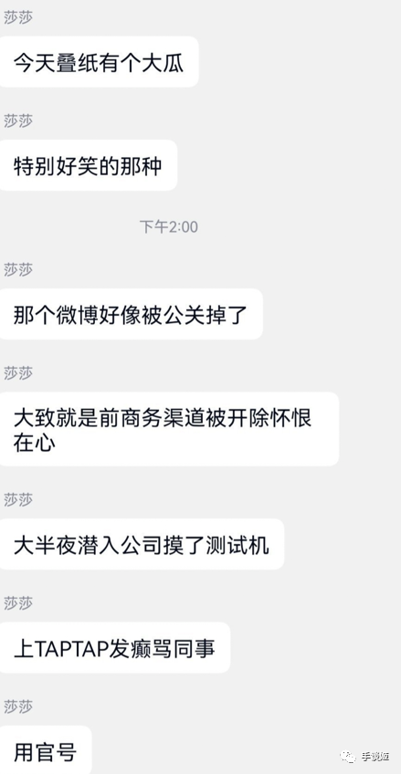 然后这位被开的员工也不是省油的灯,便有了一开始在TAPTAP说胡话的事情发生,但是我们看到,这员工自认为的离职理由还是派系原因,所以我们实际上并不知道到底发生了什么。