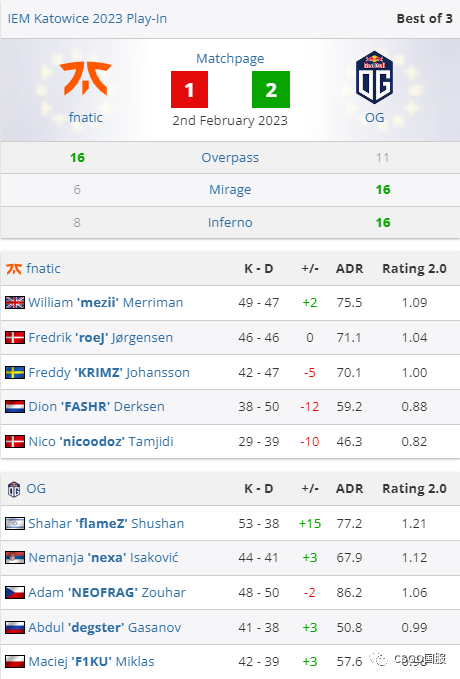 OG 2-1逆转fnatic,游乐园富贵军团全员发挥,fnatic率先赢下图一。随后画风突变,荒漠、小镇两图完全由OG掌控,OG选手各点开花轻松完成逆转,晋级正赛。