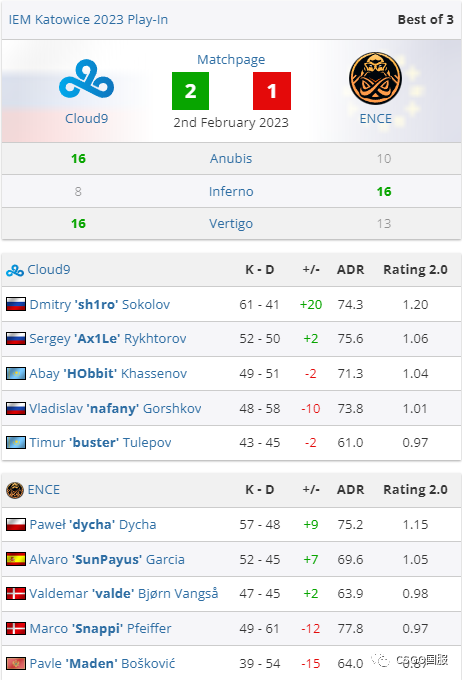 Cloud9 2-1战胜ENCE,焦点大战sh1ro、阿乐、原友发威,C9先下一图。但小镇ENCE全员在线,回敬对手扳平比分。决胜图两队各种互相翻盘,阿乐、马登都赢下过1V2残局,但C9把握住关键局险胜对手,挺进正赛。