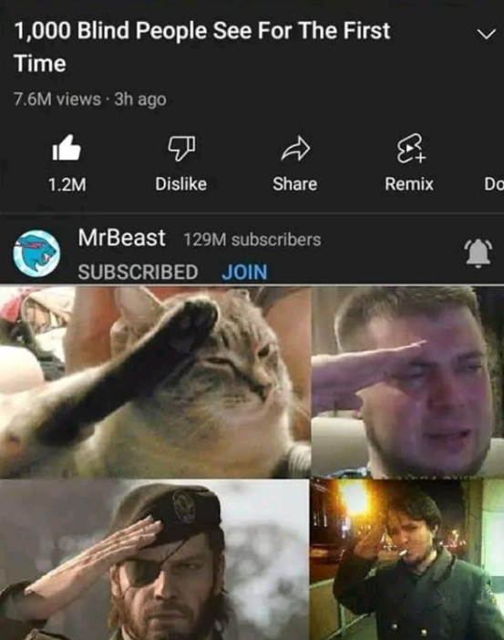 所以我们可以断定,作为唯一一个亿粉大Up,野兽前辈是位敬业的自媒体人。按理讲那些帮人实现梦想的投入本可用来帮助更多的盲人,但他却选择了最有流量最有看点的编排方式,只有这样他才能得到更多的流量影响力。