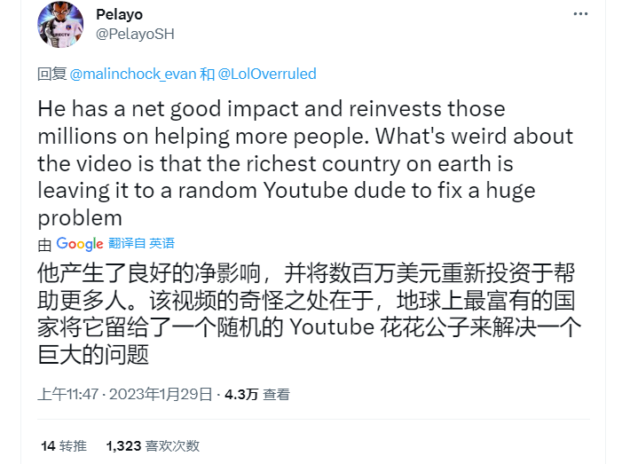 可以想到,这条片子得到了广泛赞誉,多数人称野兽前辈最好的内容创作者,向善举致敬。