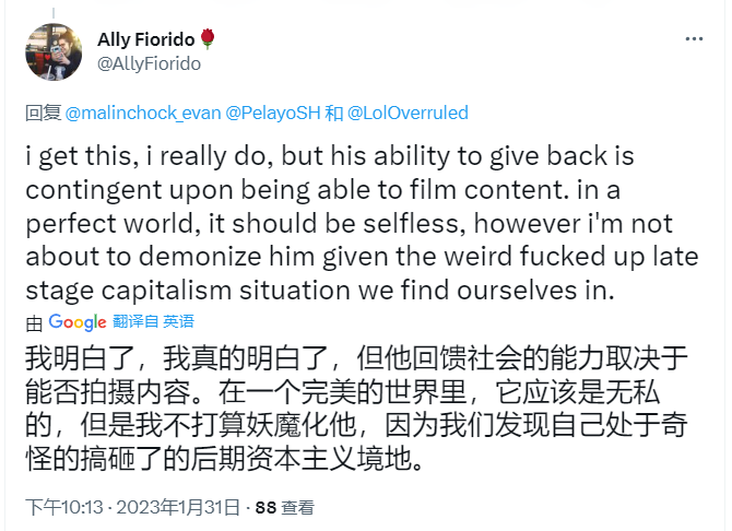 然而在互联网非此即彼的讨论环境下,同样有不少人,向野兽前辈提出了动机上的质疑。