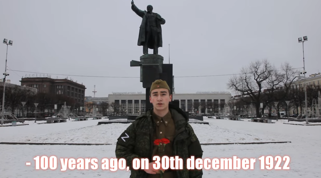 直播时周围一堆老熟人周边也就罢了,在伟大导师152周年诞辰和去年苏联建国100周年的两个时间点,这个小伙子都专门换上了苏式军装,在寒冷的雪天向先贤献上鲜花。