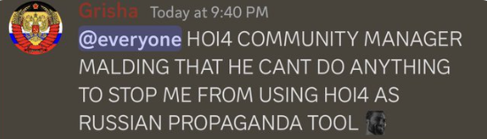 但从GrishaPutin这个网名大家能应该看出来,他的立场要比普通的高玩更加鲜明,名字里Grisha是苏联时代一种护卫舰的代称,而Putin更是智取其名,指向普大帝。