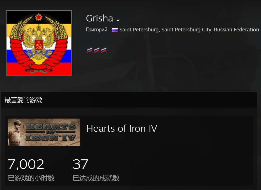 当然,特殊时期我们并不排除其中有媒体的渲染,像是我看到有媒体拟题《普京亲自会见超10000小时P社玩家》,经我查证格里沙的Steam游戏时间不过7002小时,这种夸大的春秋笔法,就不能去相信。