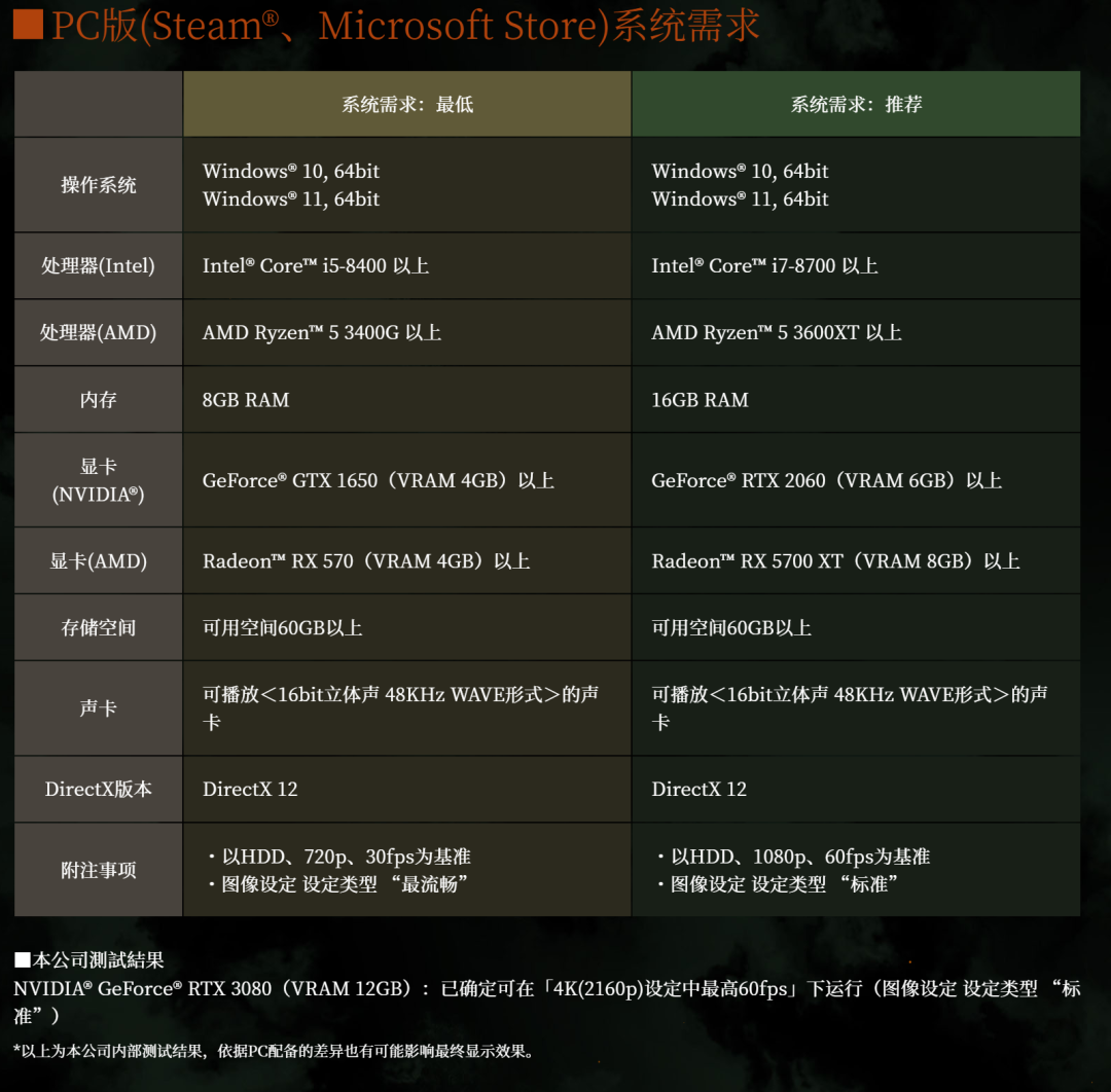 暗黑诛死三国 RPG 《卧龙:苍天陨落》公布 PC 配置需求详情,最低需 i5-8400、8 GB 内存、GTX 1650/RX 570 显卡,推荐需求为 i7-8700、16 GB 内存、RTX 2060、如下5700 XT,共需要 60 GB 以上硬盘空间。
