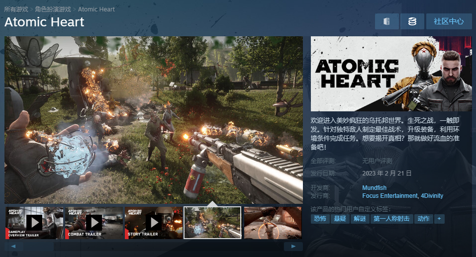 《原子之心》是一款有着奇妙乌托邦世界设定的FPS游戏,本月21日正式发售,标准版售价239元起。