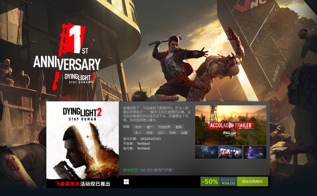 《消逝的光芒2》于去年2月4日发售,现迎来一周年。