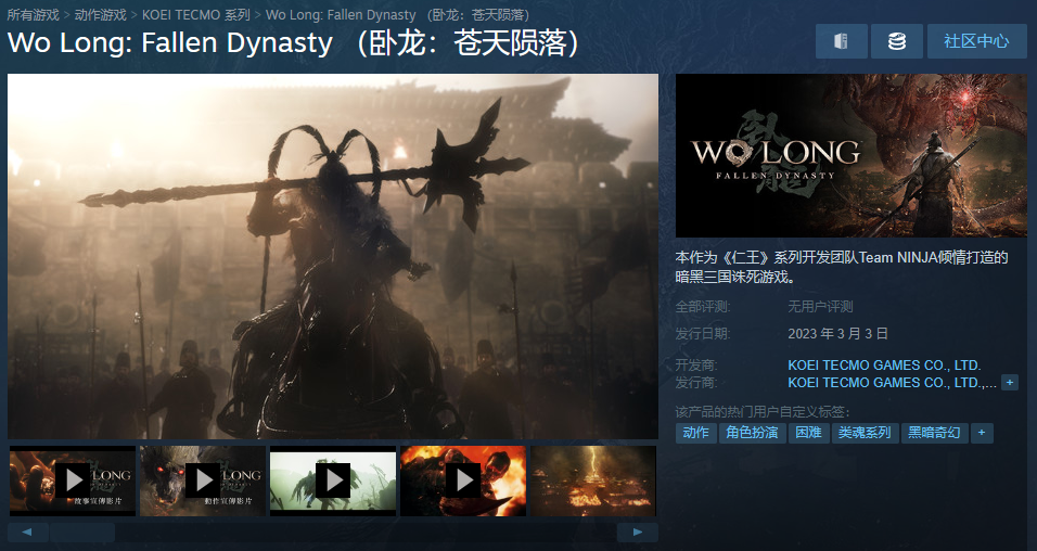 《卧龙:苍天陨落》以东汉末年的中原大地为舞台,将三国元素和志怪经典作品《山海经》中出现的妖怪进行有机的融合。玩家将扮演无名义勇兵,使用通过精心考究后设计的中华武术动作,踏破妖魔横行之乱世。本作将于3月3日发售,游戏Steam版现已开启预售,标准版售价298元,包含季票的豪华版售价447元,现在购买还可获得多套特典战铠套装奖励。