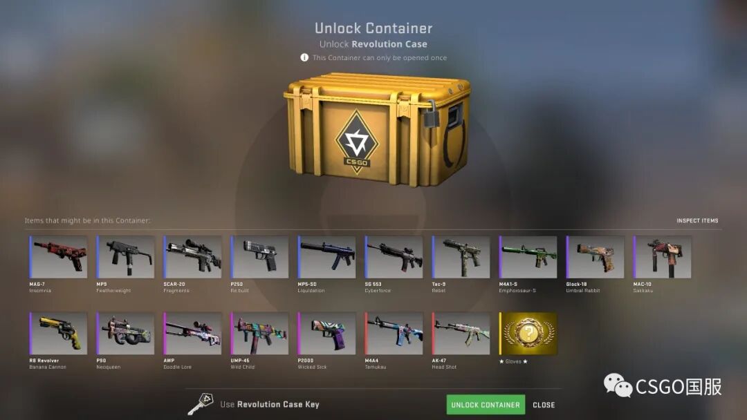 今天CSGO发布了“变革”武器箱,包括来自社区艺术家创作的17款枪械皮肤,以及同命悬一线武器箱的手套作为罕见特殊物品。