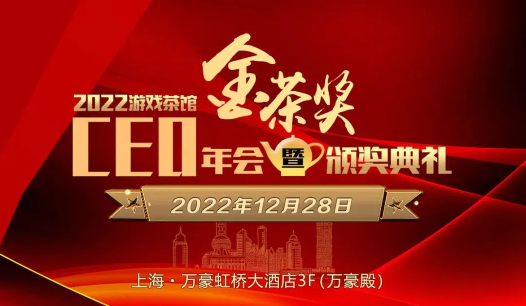金茶奖盛典是游戏茶馆每年度都会举办的游戏行业年终大型盛会。今年,“第十届金茶奖盛典”暨“GTA游戏出海峰会(Game Overseas Summit)”将在2022年12月28日下午,于上海万豪虹桥大酒店3F(万豪殿)举行。