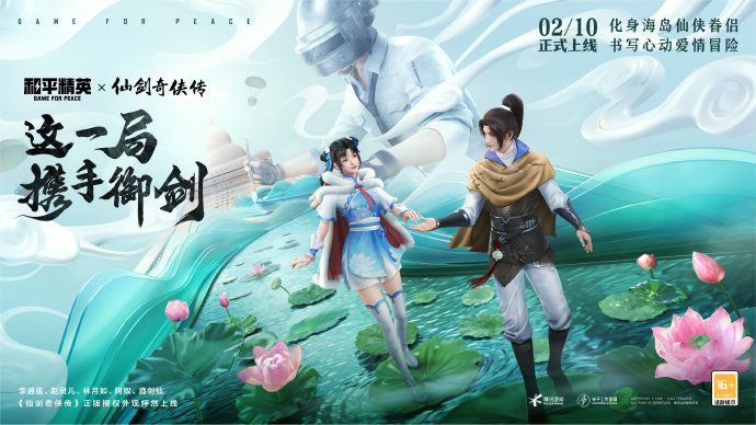 《和平精英》与《仙剑奇侠传》在2月10日开启进联动活动, 游戏内上线了李逍遥、赵灵儿、林月如、阿奴、酒剑仙系列联动外观。