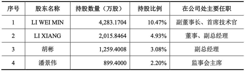 王燕清为微导纳米聘请了多位60后、80后技术专家及高管,作为儿子日后的左膀右臂。比如4名核心技术人员中,微导纳米副董事长、首席技术官LI WEI MIN(黎微明)出生于1967年,董事、副总经理LI XIANG(李翔)出生于1981年,两人均曾在ALD设备领军企业芬兰Picosun公司及先导智能任职。微导纳米半导体事业部工艺副总监吴兴华出生于1980年,曾在中芯国际担任研发工程师;光伏事业部副总经理许所昌出生于1985年,曾在中国台湾工研院、昱晶能源、泰州中来光电就职。在管理层方面,微导纳米总经理ZHOU REN(周仁)出生于1963年,曾在泛林、中微半导体、科磊(KLA)、拓荆科技等多家中美半导体设备龙头企业担任重要工程职位。微导纳米副总经理胡彬出生于1983年,财务负责人俞潇莹出生于1984年,均曾是先导智能的高层。微导纳米董事会秘书龙文出生于1988年,曾在天星资本、翼朴资本担任投资经理。王燕清也给对微导纳米核心团队授予了丰厚的股权报酬,其董事、监事、高级管理人员、核心技术人员直接持股份情况如下:![]()