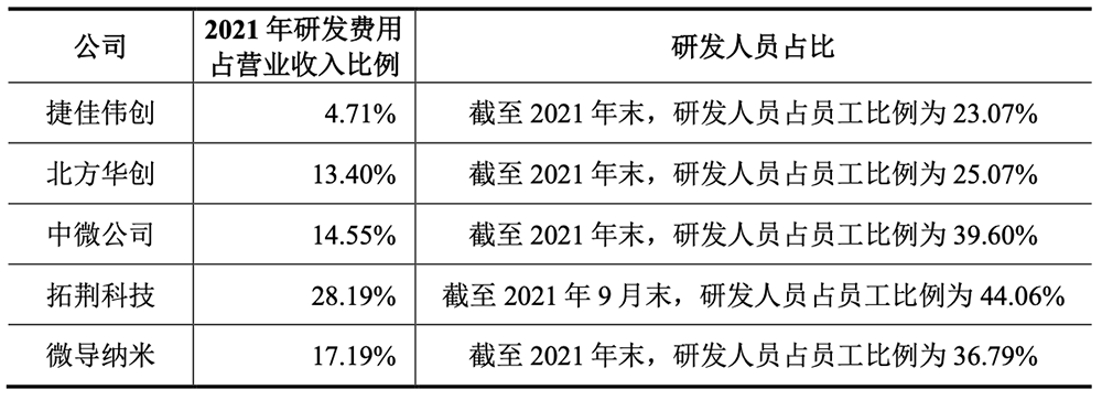 截至2022年6月30日,微导纳米拥有206名研发人员,占总人数的25.50%,共有97项专利。其研发费用占比和研发人员占比高于同行业上市公司平均水平。![]()