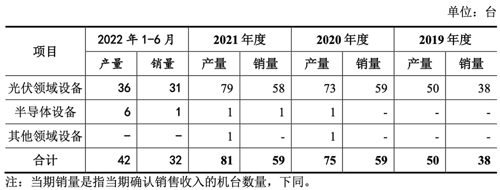 2019年、2020年、2021年、2022年上半年,微导纳米专用设备产量分别为50台、75台、81台、42台,销量分别为38台、59台、59台、32台。![]()