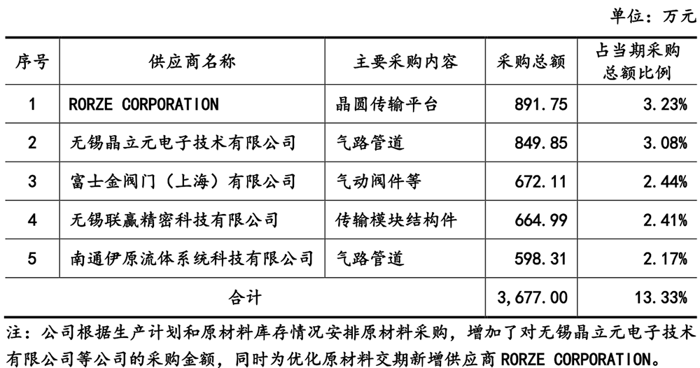 报告期内,微导纳米、微导纳米董事、监事、高级管理人员或持有公司5%以上股份的股东与前五名客户之间不存在关联关系。报告期内,微导纳米进口的核心元器件采购金额分别为0.28亿元、0.19亿元、0.46亿元、0.34亿元,占采购总额的比例分别为21.18%、7.87%、15.80%、12.45%。![]()