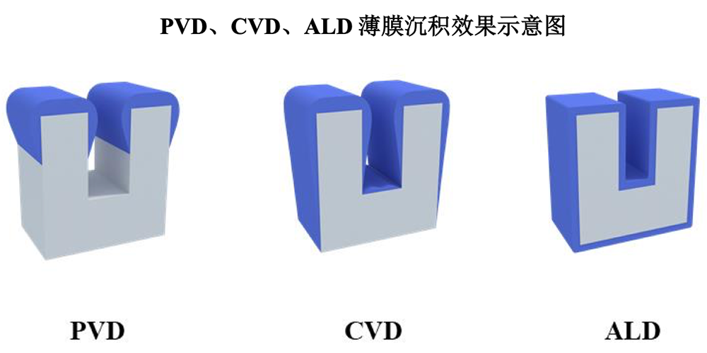 薄膜沉积设备的不断创新和进步,支撑制造工艺向更小制程发展,所需的薄膜层数越来越多。在90nm CMOS工艺大约需要40道薄膜沉积工序。在3nm FinFET工艺则超过100道薄膜沉积工序,涉及的薄膜材料由6种增加到近20种,对于薄膜颗粒的要求也由微米级提高到纳米级。半导体制程进入28nm后,由于器件结构不断缩小且更为3D立体化,生产过程中需要实现厚度更薄的膜层,以及在更为立体的器件表面均匀镀膜。ALD技术凭借优异的三维共形性、大面积成膜的均匀性、精确的膜厚控制等特点,技术优势愈加明显,市占率也将持续提高。当技术节点向14nm甚至更小的方向升级时,与PVD设备和CVD设备相比,ALD设备的必要性更加凸显。在国产化进程加快的背景下,国产半导体ALD设备迎来前所未有的发展契机。![]()