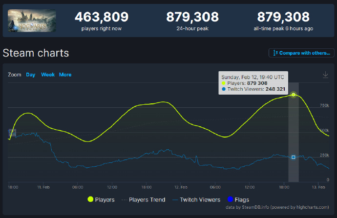 3、以《哈利波特》系列书籍为背景开发的开放世界动作角色扮演游戏《霍格沃茨之遗》已正式上线。据Steamdb数据统计,2月13日凌晨3点左右,其最高游玩人数再创新高,仅Steam平台就有879308万玩家同时在线。这一数据在Steam所有游戏中排名第8,在排除掉各大网游的情况下,《霍格沃茨之遗》的排名将上升至第三,前两名分别是《赛博朋克2077》和《艾尔登法环》。1、近日,GoG Galaxy客户端的B社《星空》页面疑似泄露了游戏的发售日为2023年6月29号,但该页面目前已经被删除。巧合的是,Xbox官方今日发推表示“大的要来了”,外界猜测,这可能与《星空》的发售日期有关。2、今日,SE旗下手游《圣剑传说 ECHOES of MANA》官方宣布,游戏将于2023年5月15日停服,该游戏于2022年4月27日上线,仅运营了1年左右。3、《中国式家长》精神续作《中国式相亲2》上架Steam,但游戏的具体发售时间还未公布。1、中国《星际争霸2》选手Oliveira(李培楠)在2023 IEM卡托维兹站总决赛中,4比1战胜韩国选手Maru夺冠,赛前外媒给出的其夺冠概率仅为0.37%。2、近日,随着《霍格沃茨之遗》的发售,索尼推出了售价为79.99美元(约合人民币547元)《霍格沃茨之遗》的联名限定款PS5手柄,且每个用户仅能购买一个。预售当日,该手柄便在1分钟内售罄了。点击小程序,即可报名