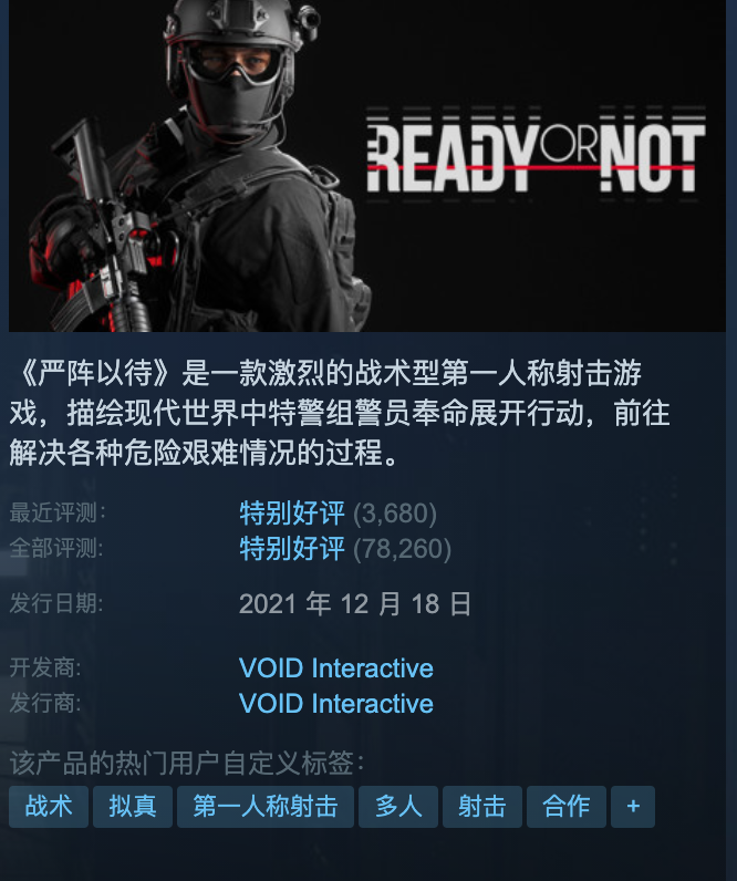 目前《严阵以待》在Steam有92%好评率,7.8万条评论,虽然游戏在国内比较小众,但本身品质还是相当受世界范围内玩家认可的,想找到朋友一起玩也并不难。