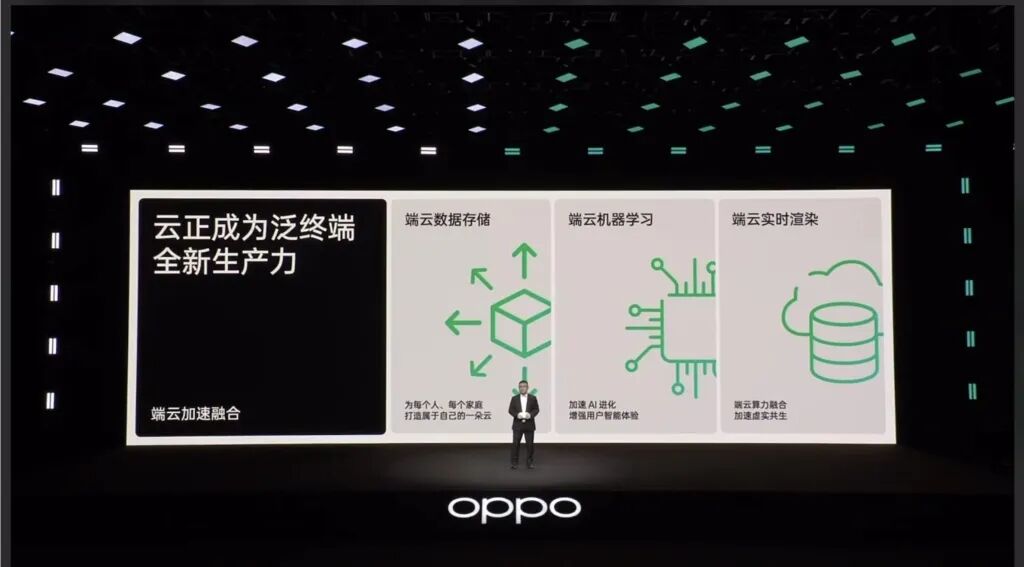 在OPPO全力推动终端云建设的背后,时机也很重要。否则即便OPPO的技术积累深厚,也无法独自构建出真正可用、好用的安第斯智能云。于开发者而言,万物互融的趋势下,只有新的终端云能够支撑终端设备的功能、应用创新,满足用户不断刷新的需求。于终端产业而言,存储空间限制、用户对于更智能设备的需求以及虚实共生等未来趋势的出现,都对上游的软硬件开发提出了迫切且必须面对的挑战。目前,端云协同正是这场考验的最优解。于OPPO而言,作为一个智能终端玩家,OPPO对于产业中的变革观察则更为深刻。陈晓春总结道,通信技术从2G、3G到如今5G的发展,端云间的带宽问题被解决了,个人和家庭上云其实就已经成为了一个不可逆的趋势。诸多的产业趋势表明,OPPO做终端云的条件和时机都已成熟且急迫。刘海锋强调,OPPO并不是要做公有云,而是始终围绕着“让终端更智能”这个核心,回归到安第斯智能云本身的行业属性中去。OPPO的三大核心技术自研芯片、跨端系统以及智能云,最终也是合力指向提升用户智能终端体验。![]()
