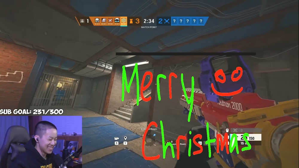 例如,上图中的亚裔Twitch主播Athieno,在后续的一场游戏中以最别致的方式收到了来自匿名外挂使用者的祝福:“圣诞快乐”。