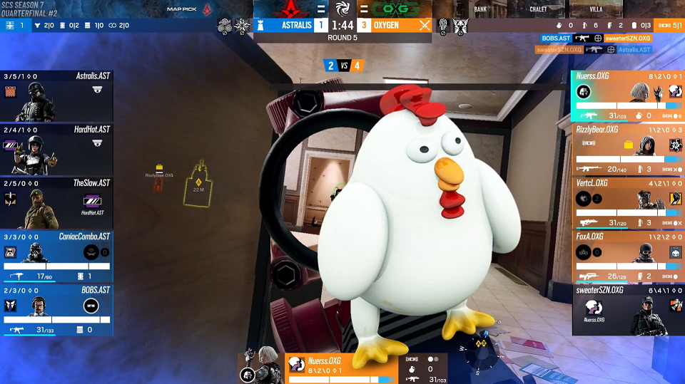 公鸡出现的时刻并不固定,登场时还自带仿佛幻灯片切入的效果。假如它在对枪时冒出来,难免会让人心烦意乱,乃至输掉游戏。
