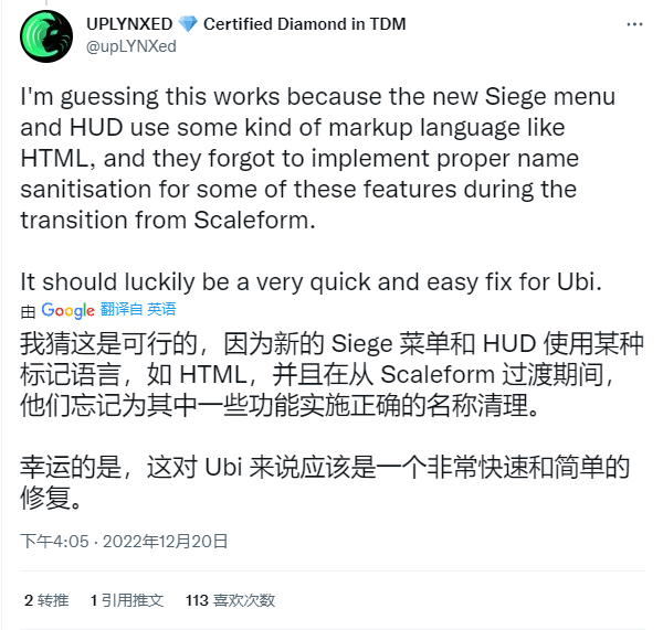 最终也不出UPLYNXED所料,育碧很快注意到了玩家们的反馈。12月22日,育碧发布了一则已知问题更新,毫不令人感到意外地修复了一批Bug,同时也指出,他们正在跟踪作弊报告存在的问题,将在发布补丁之前暂时禁用这项功能。