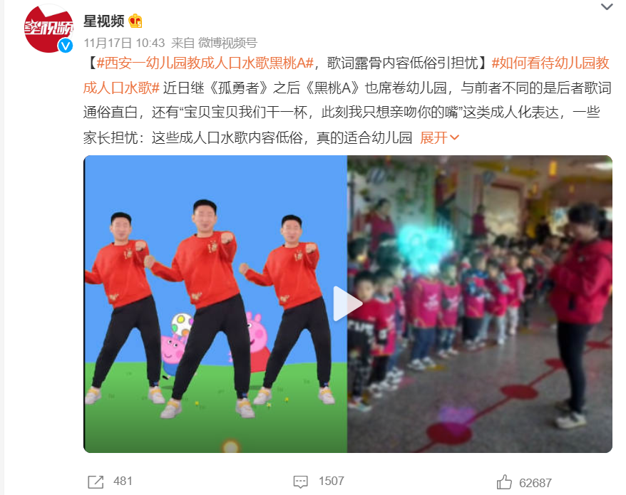 这由此也引发了一连串广受关注的社会新闻,其中就包括前段时间多家新闻媒体报道过的,幼儿园教授成人口水歌事件。